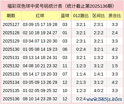 红球三区比2:1:3,质合比为1:5,012路比为0:2:4,蓝球为合数、0路号码。